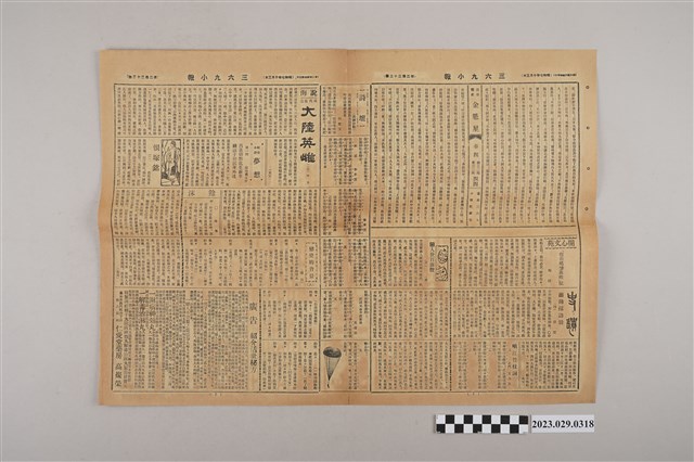 本物件為三六九小報社所發行《三六九小報》第二百二十二號,發行人為趙雅福,報紙正面刊登太原醫院、永茂商行、逢安治療所、蘭記書局、長門屋玩具店、赤崁麵部等廣告,背面為雜爼專欄、雅言專欄、花叢小記、東鱗西爪等文章,翻開內頁則為大陸英雄、恨塚銘、金魁星等長篇連載,右邊刊有開心文苑專欄,內頁中間為詩壇專欄左下為廣告欄位。《三六九小報》發行時間至昭和5年 (1930)至昭和10年 (1935)。旨以刊登戲謔、針貶時事之文,反映當時的社會狀況。