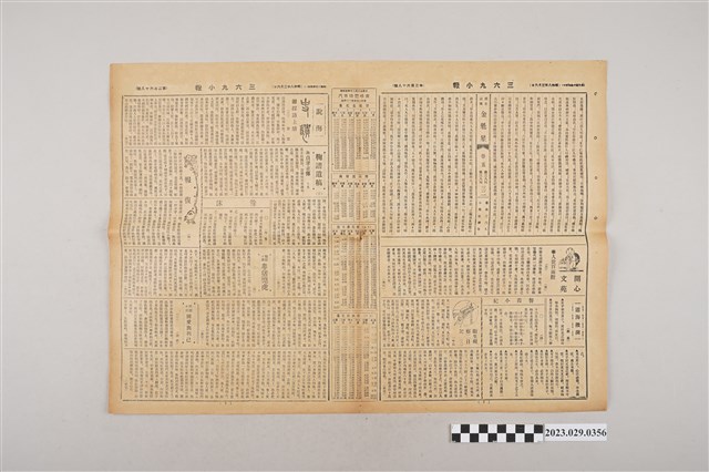1.本物件為三六九小報社發行《三六九小報》第二百六十八號,發行人為趙雅福,本報正面為廣告頁,可見王子典漢醫院、永茂商行、新書發表、長門屋玩具店等廣告;背面有雜爼專欄「讀者坐談會」、科學趣味、新聲律啟蒙、詩壇、秋燈誌異等等;翻開內頁有短篇小說「婁豬斃虎」、問題小說「博愛與利己」、開心文苑、鞠譜遺稿等專欄文章,以及汽車時間略表。2.《三六九小報》發行時間至昭和5年 (1930)至昭和10年 (1935)。旨以刊登戲謔、針貶時事之文,反映當時的社會狀況。