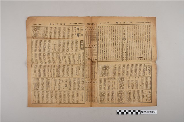 1.本物件為三六九小報社發行《三六九小報》第四百七十一號,發行人為趙雅福,正面為廣告頁,有泰安合資會社、和光醫院、王外科醫院、鴻文活版舍、蘭記書局等廣告;背面雜爼專欄則有「靜室小言」、「黃莘田與徐懶雲」等文章;翻開內頁有說海專欄「街名七星」、滑稽小說「酒徒自述」等文章。2.《三六九小報》發行時間自昭和5年(1930)至昭和10年(1935),旨以刊登戲謔、針砭時事之文,反映當時的社會狀況。