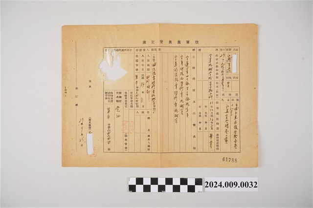 本件空軍黨員登記表為61788號,登記日期為1950年9月25日。登載該黨員1945年8月於四川成都入黨,原黨證字號為軍平字第34744號。登錄本登記表時之職務為空軍補給總庫機械官。