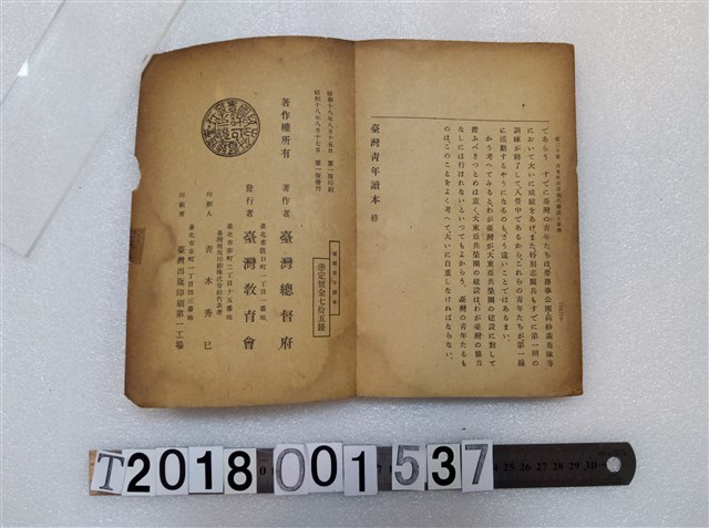 臺灣總督府著《臺灣青年讀本》昭和十八年八月十七日發行