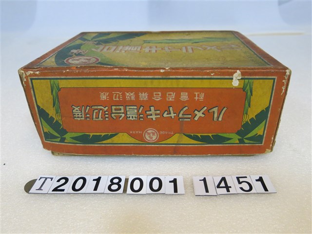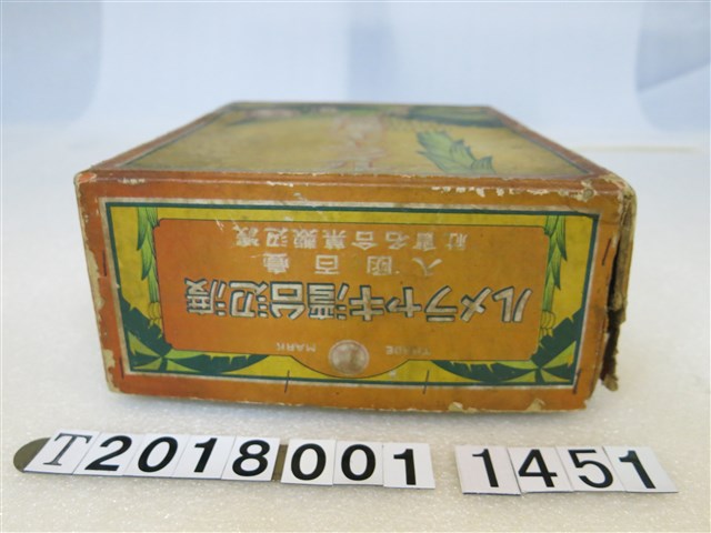 1.本物件是渡邊製菓出品臺灣牛奶糖盒。紙製品。底色為黃底,以香蕉樹為主要意象。正面繪有一棵香蕉樹。寫著「渡邊 臺灣キャラメル」(按:渡邊 臺灣牛奶糖)。上方同樣寫著渡邊臺灣キャラメル,及渡邊製菓合名株式會社。