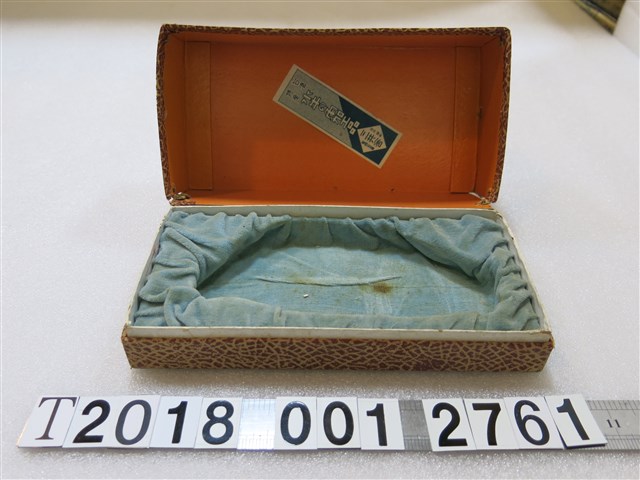 1.本物件為水牛造型水牛角筆筒。為牛角材質,附有包裝用紙盒。盒內上方貼有「臺灣特產 水牛の角加工品 三共舍」標籤。2.三共舍位於臺北市榮町4丁目5番地,負責人牧野東太郎,主要從事原住民產品及臺灣特產物零售。