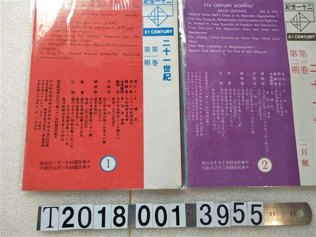 《二十一世紀》第1期、第2期、發行人:王濟昌