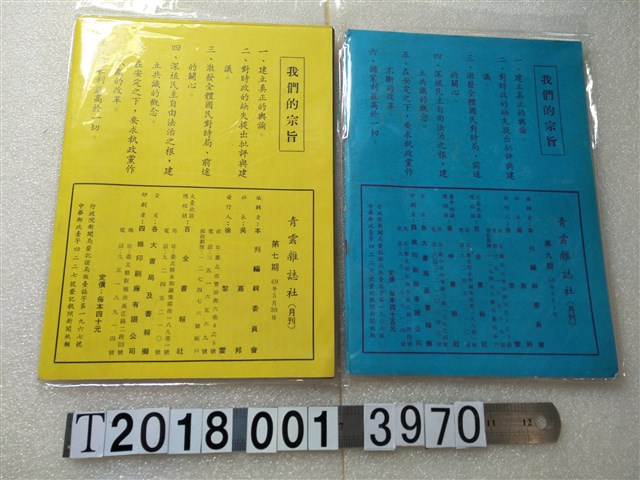 《青空雜誌》第7期、第9期、出版社:青雲雜誌社、發行人:徐黎雲;3964~3970放一包