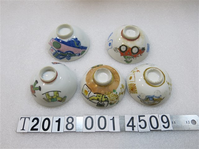 陶瓷製日式童趣畫風日本旗與汽車與木馬圖樣紀念碗