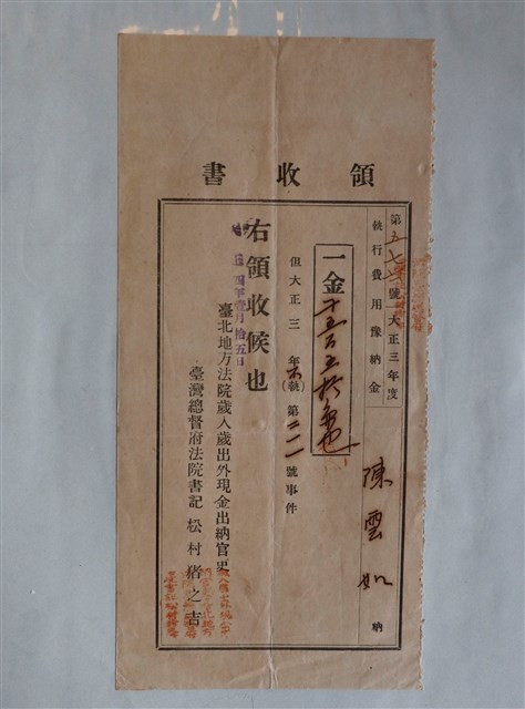陳雲如特別會計財產造成費歲入與執行費用豫納金領收證