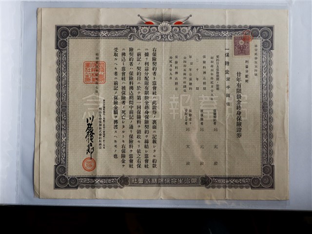 邱充廿年有限掛金終身保險證券