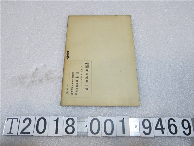 臺糖屏東總廠編纂《臺灣糖業公司屏東總廠一覽》