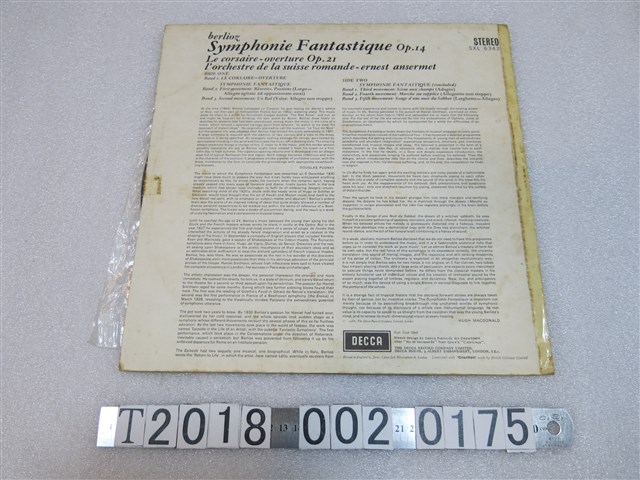 迪卡唱片發行《白遼士:幻想交響曲》黑膠唱片