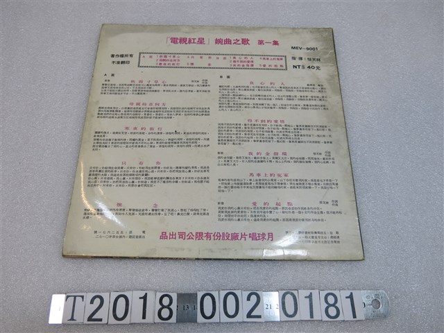 月球唱片廠出品「電視紅星」婉曲之歌第一集《負心的人》黑膠唱片