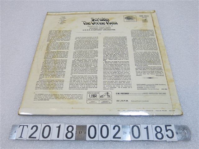 Melodiya唱片公司發行《史克里亞賓:神聖之詩》第三號交響曲黑膠唱片