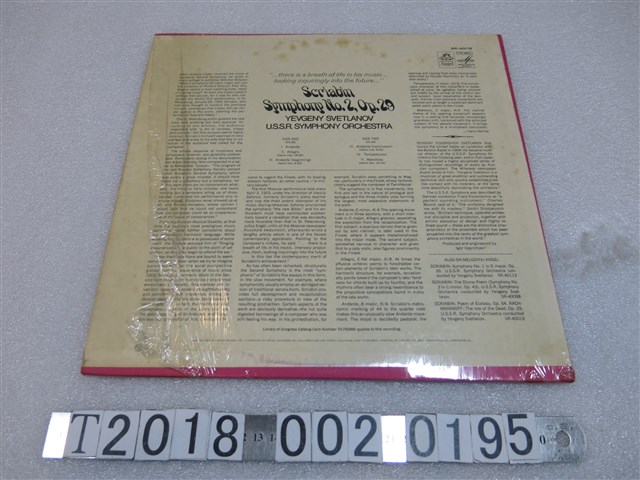 Melodiya唱片公司發行《史克里亞賓:第二號交響曲》黑膠唱片