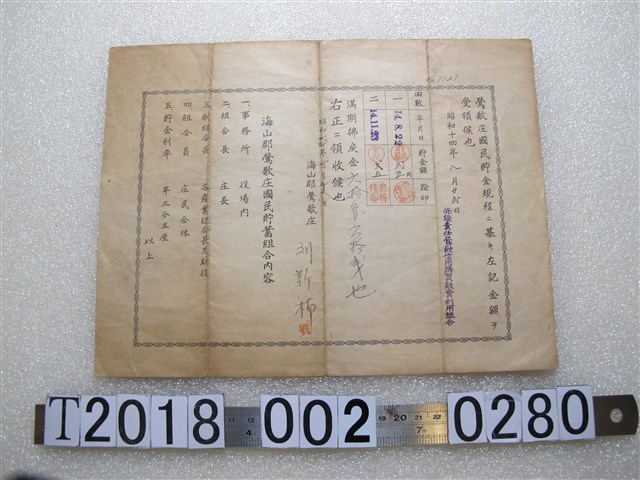 劉新楠鶯歌庄國民貯蓄組合國民貯蓄證書