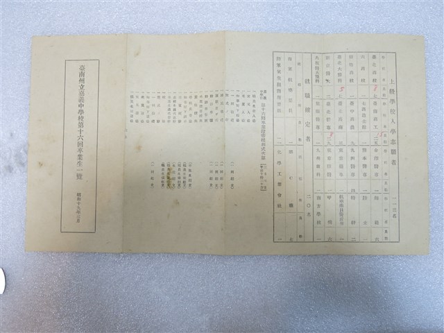 臺南州立嘉義中學校第十六回畢業生一覽表