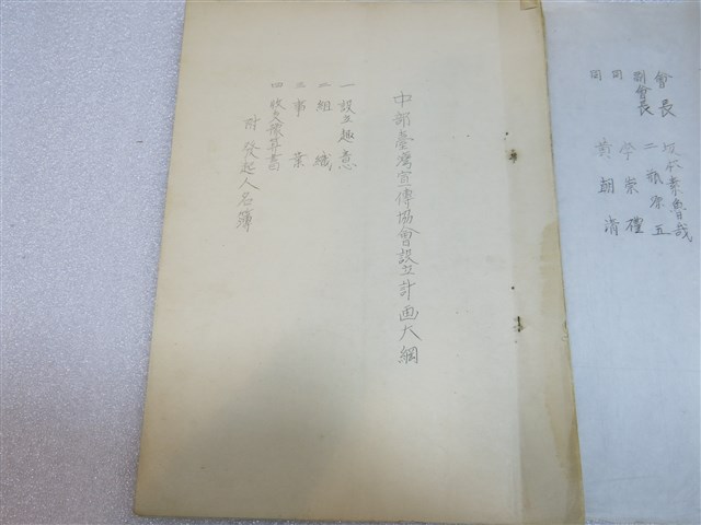 中部臺灣宣傳協會設立計畫大綱與書信與捐款等相關資料