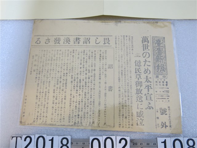 臺灣新報中部支社發行《臺灣新報》昭和二十年八月十五日版