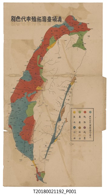〈清領臺灣拓殖年代色別地圖〉