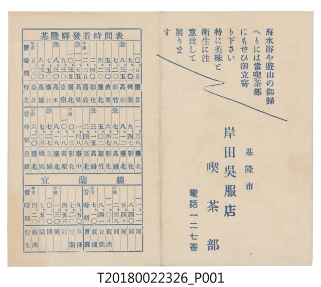 基隆市岸田吳服店喫茶部廣告基隆車站與船班交通資訊