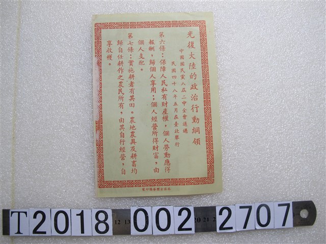 旅菲全體華僑印製耕者有其田宣傳與光復大陸傳單