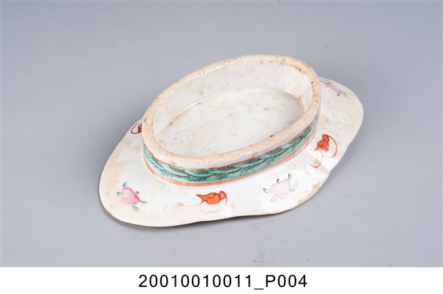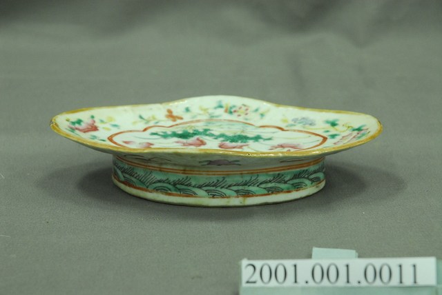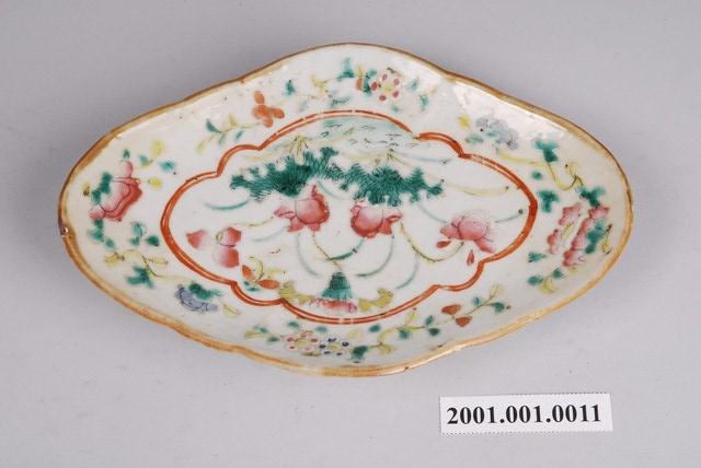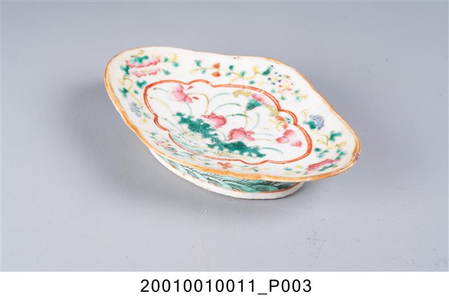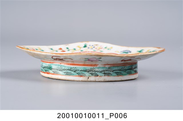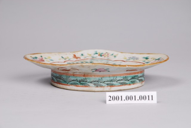 2001.001.0011 手繪釉上彩花卉紋菱形高足盤