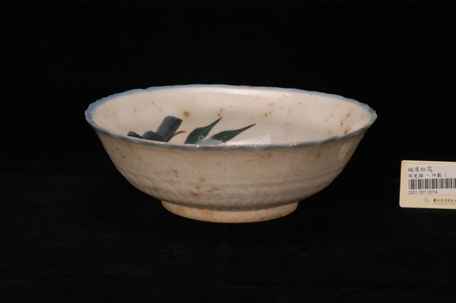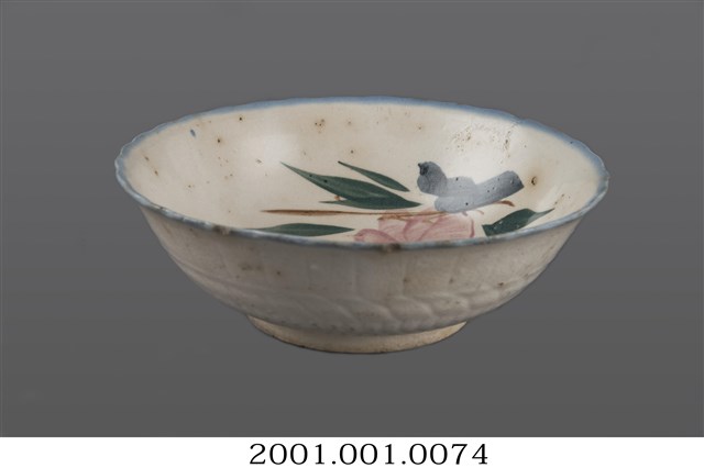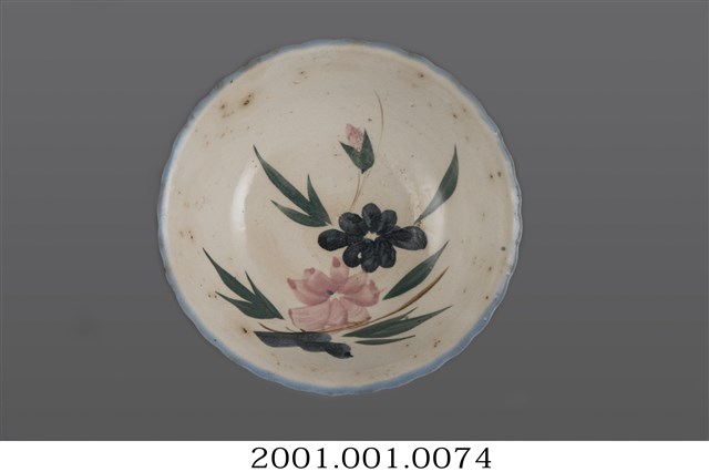 2001.001.0074 手繪胭脂紅釉花卉紋花口碗