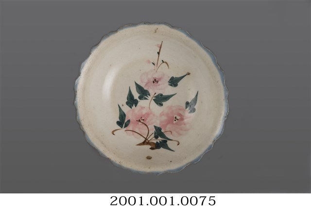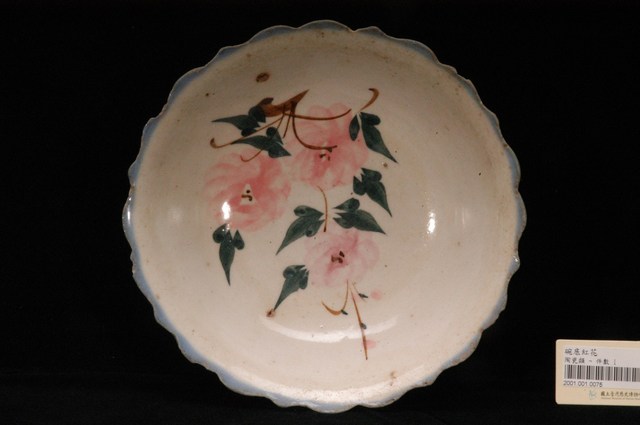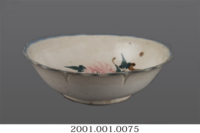 2001.001.0075 手繪胭脂紅釉花卉紋花口碗