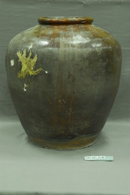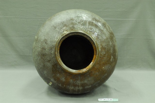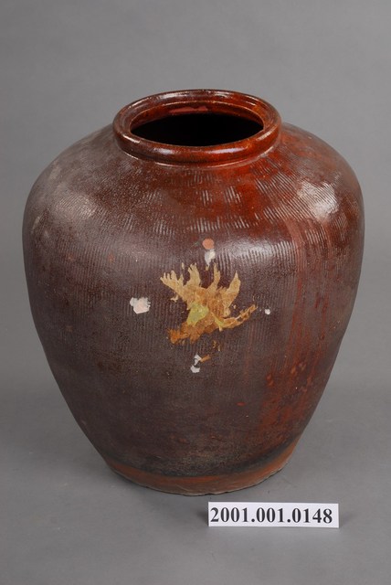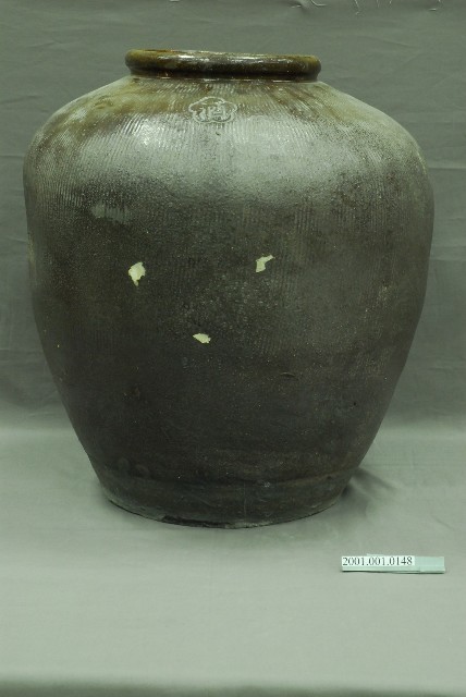 2001.001.0148 褐紅釉壓印直紋酒甕