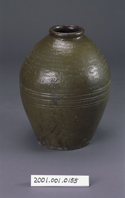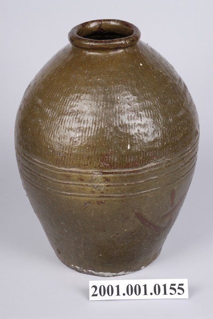 2001.001.0155 橄欖綠釉壓印紋酒甕