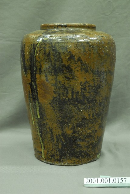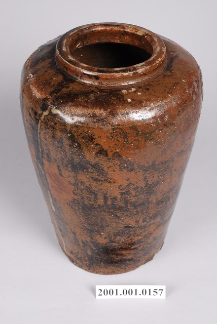 2001.001.0157 褐底黑紋豆菜甕