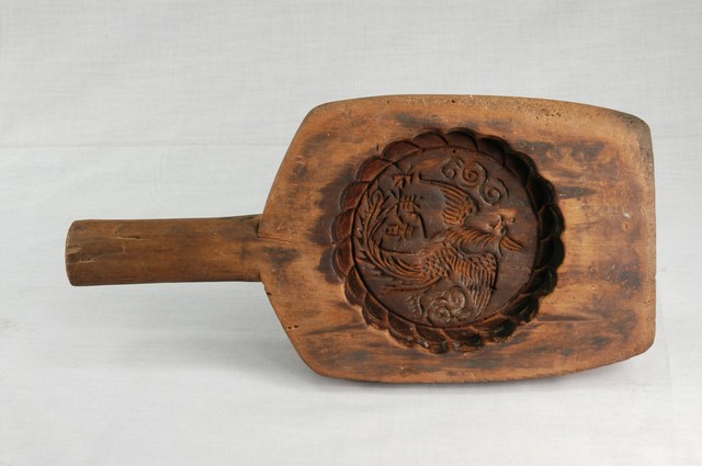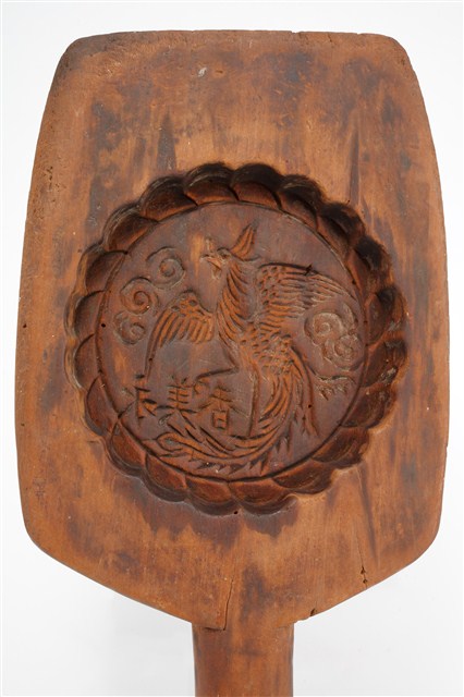 2001.001.0183 五邊形單面雕雲鳳紋帶柄餅印