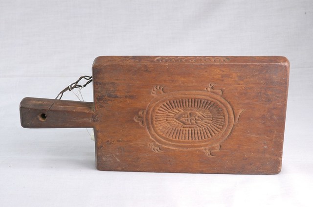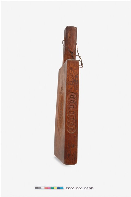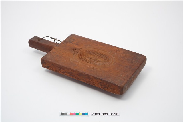 2001.001.0198 長方形三面雕壽龜桃銀圓連錢紋帶柄粿印