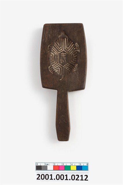 2001.001.0212 長方形雙面雕龜桃紋帶柄粿印