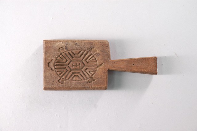 2001.001.0218 長方形雙面雕龜桃紋帶柄粿印