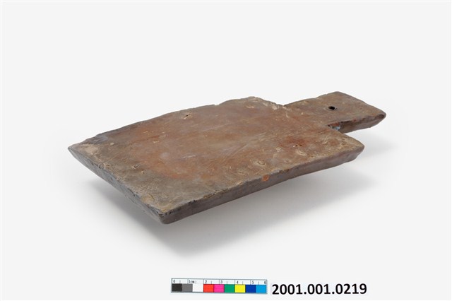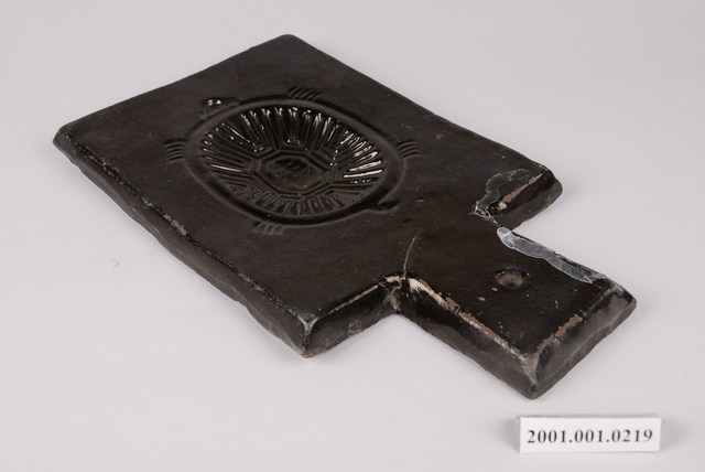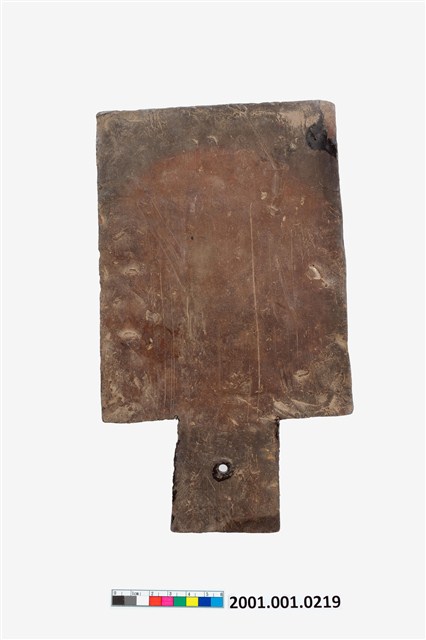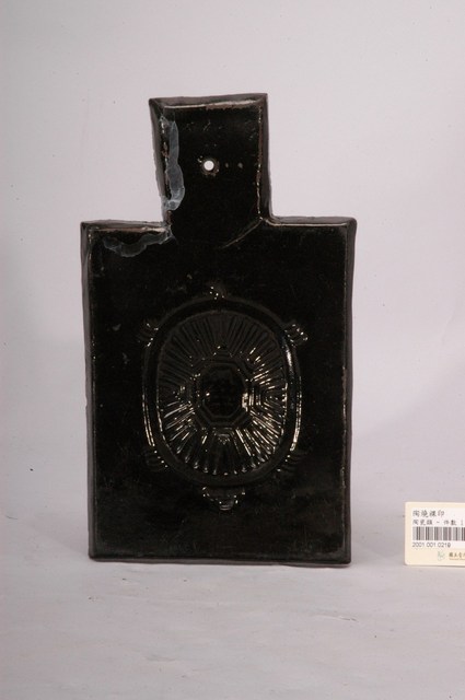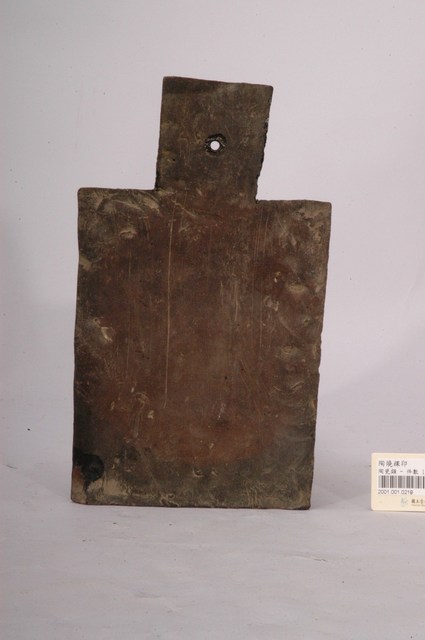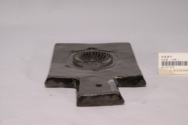 2001.001.0219 陶燒長方形單面雕壽龜紋帶柄粿印