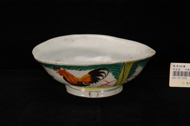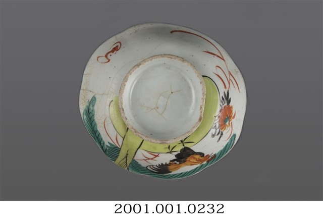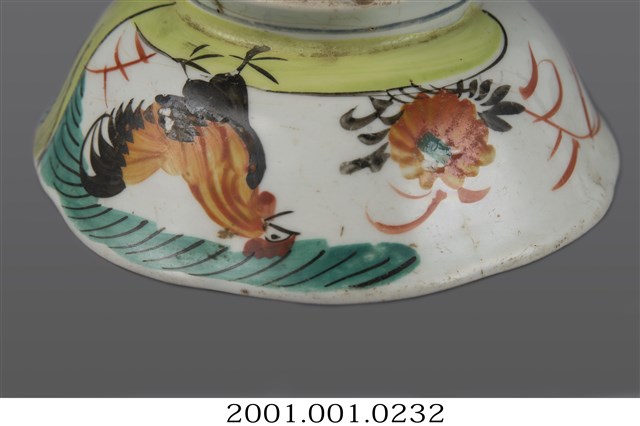 2001.001.0232 釉上五彩公雞花紋花口碗