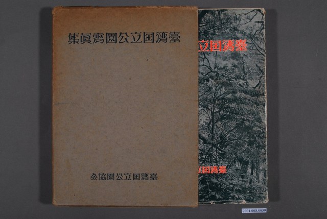 1.臺灣總督府內務局土木課內臺灣國立公園協會發行《臺灣國立公園寫真集》,岡田紅陽攝影,長崎浩編輯兼發行人,印刷人島連太郎,印刷廠三秀舍(日本東京市神田區美土代町十六番地),昭和14(1939)年4月20日印刷、4月25日發行,定價三圓。版權頁註明「臺灣軍司令部檢閱濟」。精裝本,附有書盒。