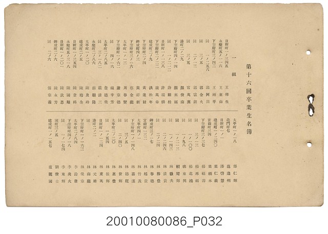 2001.008.0086 《臺北市日新公學校第16屆畢業紀念冊》