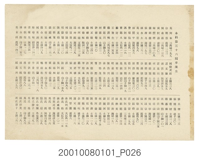 2001.008.0101 《士林公學校本科第36屆暨高等科第14屆畢業紀念冊》
