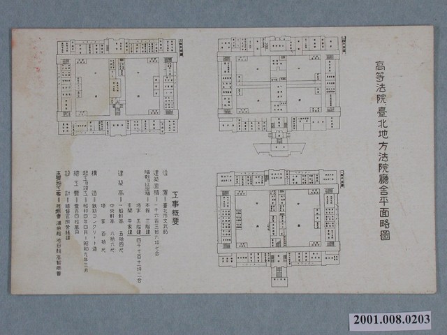 2001.008.0203 高等法院及臺北地方法院廳舍平面略圖