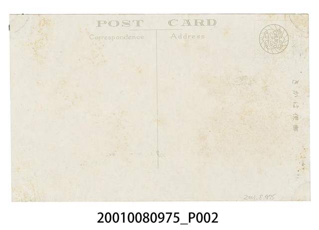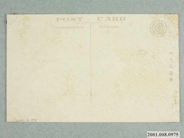 1.本物件為以草山貴賓館為主題之明信片,其正面為草山溫泉貴賓館黑白照片,左下角標註「草山 貴賓館(臺灣)」,背面為空白明信片直式書寫面,以黑色單色印刷,左上角一方框內有一個圓形圖樣標有英文字「CHUKYO」、「C.P.CO.」,明信片上方位置標有「郵便はがき」,左方以英文標註「POST CARD」,以及上「Address」、下「Correspondence」,中間有一分隔線。