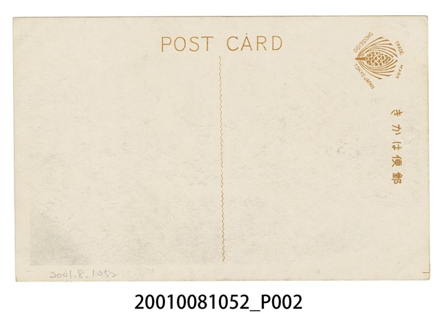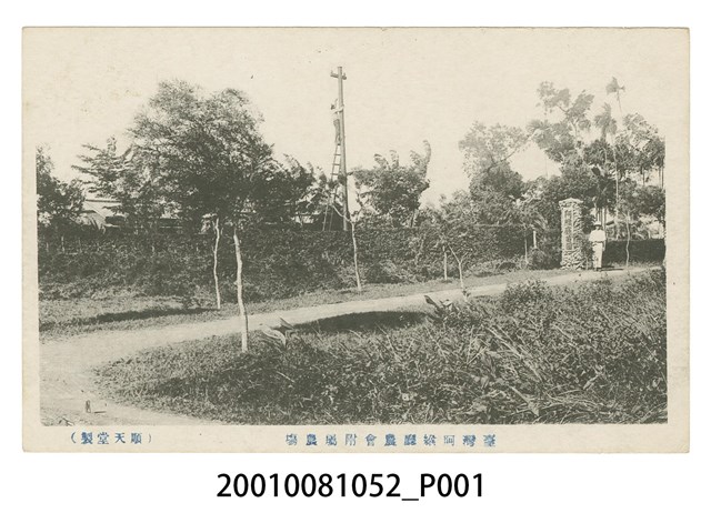 本物件為以屏東阿緱廳農會附屬農場為主題之明信片,其正面為農場黑白照片,影像中央偏左位置,有1人以梯子上攀至桿上,右側部分有一石柱上標有「阿緱廳苗園」,其旁邊有1人佇立,影像下方標有兩段文字,由右至左:「臺灣阿緱廳農會附屬農場」、「(順天堂製)」。背面為空白明信片直式書寫面,以橙色單色印刷,左上方有一個毬果狀的圖樣,圖樣上下方分別有兩段英文「TRADE MARK」、「SHOSEIDO TOKYO JAPAN」,圖樣有「郵便はがき」,明信片左方位置標註「POST CARD」,中間有一曲線分隔線。