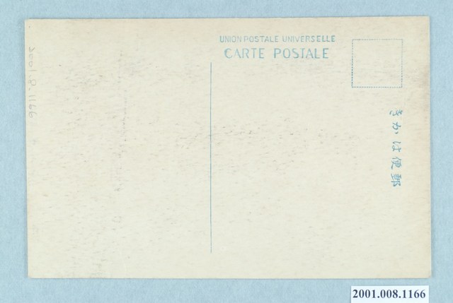 1. 本物件為以嘉義北回歸線標塔為主題之明信片,其正面為北回歸線地標黑白照片,影像中為一座上方為圓頂的石磚堆砌的石製地標塔,以中文刻有「北回歸線標」、右「北緯二十三度二十七分四秒三一」、左「東經百二十度二十四分四六秒五」,下方標註:「北回歸線標」、「Y53.」。背面為空白明信片橫式書寫面,以藍色單色印刷,右上角有一虛線方框為郵票黏貼處,右側標有「郵便はがき」,上方印有兩段文字,由上至下「UNION POSTALE UNIVERSELLE」、「CARTE POSTALE」」,中間有一條分隔線。2. 嘉義北回歸線標設置於西元1908年,位於今嘉義縣水上鄉。從嘉義發車後右邊車窗可以看到,北緯23度37分4秒51、東經120度24分46秒5的地方,在這個地點以南熱帶色彩會越來濃厚。