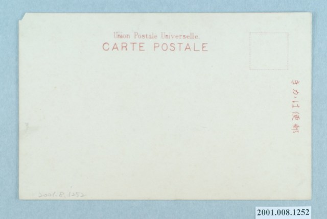 1. 本物件為以水牛犁田為主題之明信片,其正面為水牛犁田情況黑白照片,影像右邊有兩名農人,其中一人前方有兩頭水牛拖著犁,進行犁田作業,兩頭水牛旁還有一隻小牛。右上角有摺損。背面為空白明信片橫式書寫面,以紅色單色印刷,右方有郵票黏貼處,右側有「郵便はがき」,上方標有兩段文字「Union Postale Universelle」、「CARTE POSTALE」。