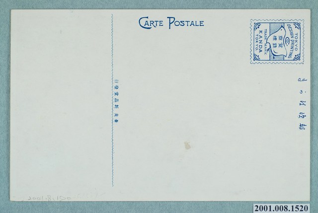 1. 本件是以鄒族原住民為主題之明信片,其正面為4名男子及1名男童於神木前方的合照。左1男子赤足站立,身穿長袖上衣著皮披肩,身前垂掛火器袋及腹袋;左2男子坐在樹根上,頭戴皮帽及貝片飾品,身穿長袖上衣,胸前佩戴火器袋,左手持長槍靠在左肩上;中央男童赤足站立,身穿長袖上衣著皮背心,右手握於左2男子的長槍上;左4男子赤足站立,頭戴皮帽及貝片飾品,胸前斜掛胸兜,腹前配掛皮袋,左腰間繫刀,雙手持長槍;左5男子赤足站立,身穿短袖上衣,左腰間繫刀,身前垂掛腹袋,雙手交握於前方。明信片正面下方印刷文字「臺灣生蕃 THE SAVAGES OF FORMOSA.」。明信片背⾯為空白書寫面,右上角藍色方框為郵票黏貼處,方框內有竹葉加鳥型商標圖示,以及「TOKYO DESIGN PRINTING Co.,TRADE MARK,千⿃印,登錄商標,KANDA TOKYO」等字樣。背面中央有道分隔線標有「臺北 新高堂發行」,其餘空白處印刷文字「「郵便はかき CARTE POSTALE」。2. 由於腹袋為阿里山鄒族男子特有的裝備,依此推測這些人物可能屬於阿里山的鄒族。