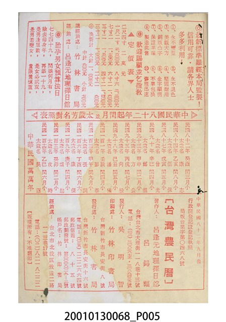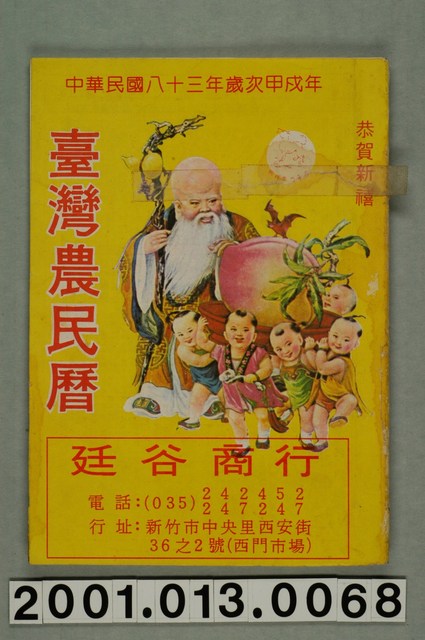 2001.013.0068 民國八十三年歲次甲戌《臺灣農民曆》
