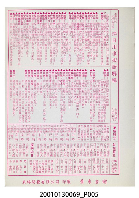 2001.013.0069 民國八十四年歲次乙亥《中國民曆》