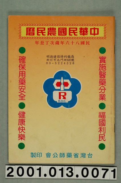 2001.013.0071 民國八十六年歲次丁丑《中華民國農民曆》