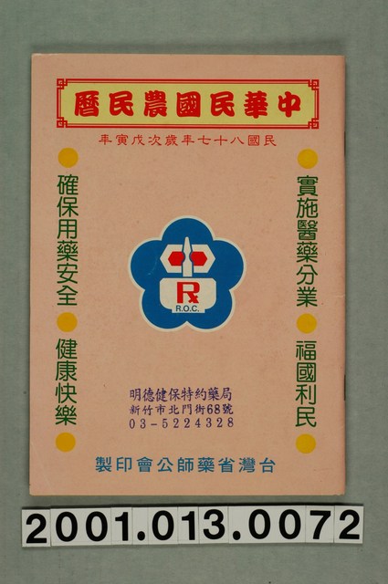 2001.013.0072 民國八十七年歲次戊寅《中華民國農民曆》