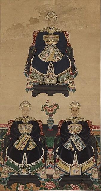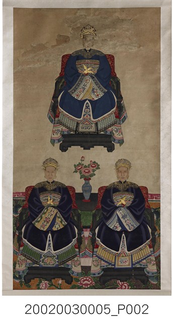2002.003.0005 彩繪三尊坐姿女祖先畫像
